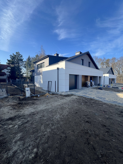 - Zamontowano bramy garażowe oraz drzwi wejściowe