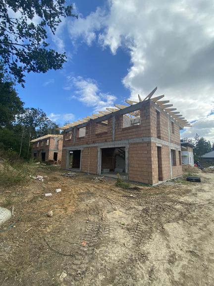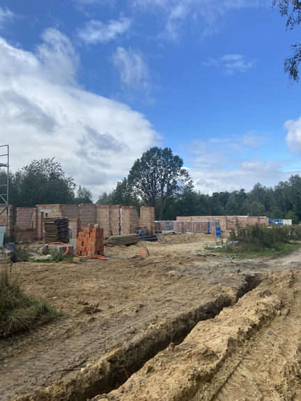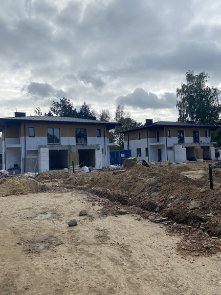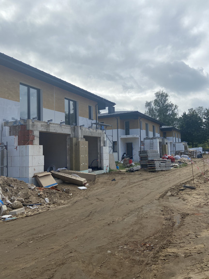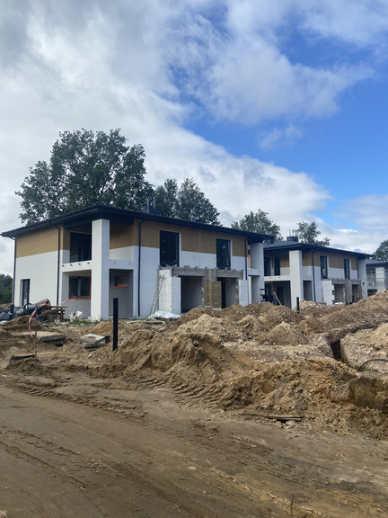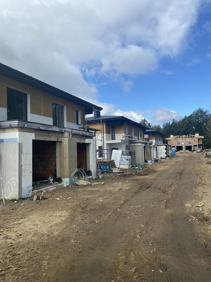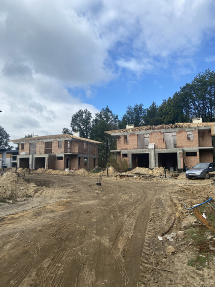 - Wykonywane są aktualnie roboty budowlane stanu surowego budynków z etapu II, wykonano ściany parteru