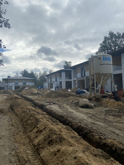 - Zakończono budowę zewnętrznych sieci i instalacji wraz z przyłączami wod-kan